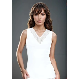 - výstřih a záda ve tvaru písmene V, zdobené krajkou s prolamovaným vzorem