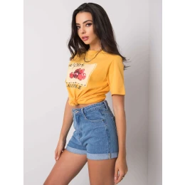 Jasne oranžové dámske tričko s potlačou a aplikáciami.