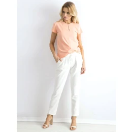 Peachy tričko. jednoduché tričko je dnes základom mnohých módnych každodenných outfitov. Mnohé ženy si bez tohto typu košele nevedia predstaviť svoj šatník. Nielenže sú veľmi pohodlné na nosenie, ale sú aj univerzálne, pretože sa hodia ku všetkému. Toto základné tričko má klasický okrúhly výstrih a krátke rukávy pre pohodlné nosenie a neobmedzený pohyb. Nielen na teplé mesiace, ale aj na zvyšok roka. Bavlnené tričko môžete nosiť samostatne so šortkami alebo džínsami alebo ako súčasť kompletnejšieho vzhľadu. Kombinujte ju s džínsovými bundami, bombermi, ramoneskami, ale aj sukňami alebo blúzkami z našej najnovšej online kolekcie. Toto dámske tričko je vďaka svojmu materiálovému zloženiu priedušné a príjemné na telo.