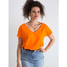Bavlnené fluo oranžové tričko s výstrihom do V.
