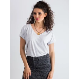 Melanžové tričko s výstřihem do V, světle šedé.