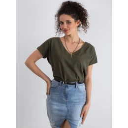 Bavlněné tričko s výstřihem do V v khaki barvě.