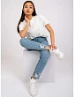 Modelka má na sebe veľkosť S. Rozmery modelky: výška 178 cm, prsia 82 cm, pás 63 cm, boky 93 cm.
