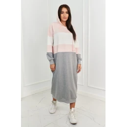 Trikolórne šaty s kapucňou púdrovo ružová + ecru + šedá