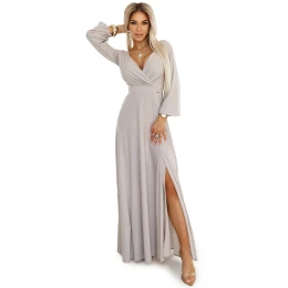 Pridanie recenzie k třpytivé dlouhé šaty s výstřihem, dlouhými rukávy a rozparkem na nohou BEACH model 20997233 - numoco