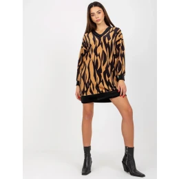 Tmavobéžové a čierne velúrové šaty s potlačou od značky RUE PARIS .
