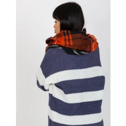 Komín s oranžovou a čiernou kockovanou potlačou .