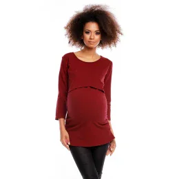 Jednoduchá tehotenská tunika s 3/4 rukávmi a lodičkovým výstrihom ušitá s ohľadom na budúce mamičky. Ideálne počas tehotenstva a dojčenia. Skrytá vyvýšená vrstva, ktorá umožňuje dojčenie, a záhyby, ktoré po tehotenstve zakrývajú nedokonalosti postavy, zaručujú pohodlie a jednoduché používanie.