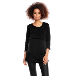 Jednoduchá tehotenská tunika s 3/4 rukávmi a lodičkovým výstrihom ušitá s ohľadom na budúce mamičky. Ideálne počas tehotenstva a dojčenia. Skrytá vyvýšená vrstva, ktorá umožňuje dojčenie, a záhyby, ktoré po tehotenstve zakrývajú nedokonalosti postavy, zaručujú pohodlie a jednoduché používanie.