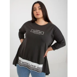 Bavlnená tunika v khaki farbe plus size s elastickou spodnou časťou.