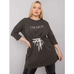 Tmavě khaki plus size tunika s nápisy.
