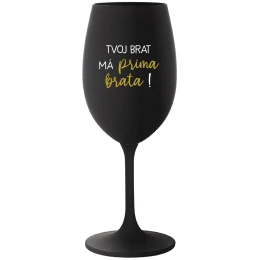 TVOJ BRAT MÁ PRIMA BRATA! - čierny pohár na víno 350 ml