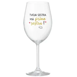 TVOJA SESTRA MÁ PRIMA SESTRU! - priehľadný pohár na víno 350 ml