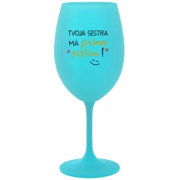 TVOJA SESTRA MÁ PRIMA SESTRU! - tyrkysový pohár na víno 350 ml