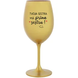 TVOJA SESTRA MÁ PRIMA SESTRU! - zlatý pohár na víno 350 ml
