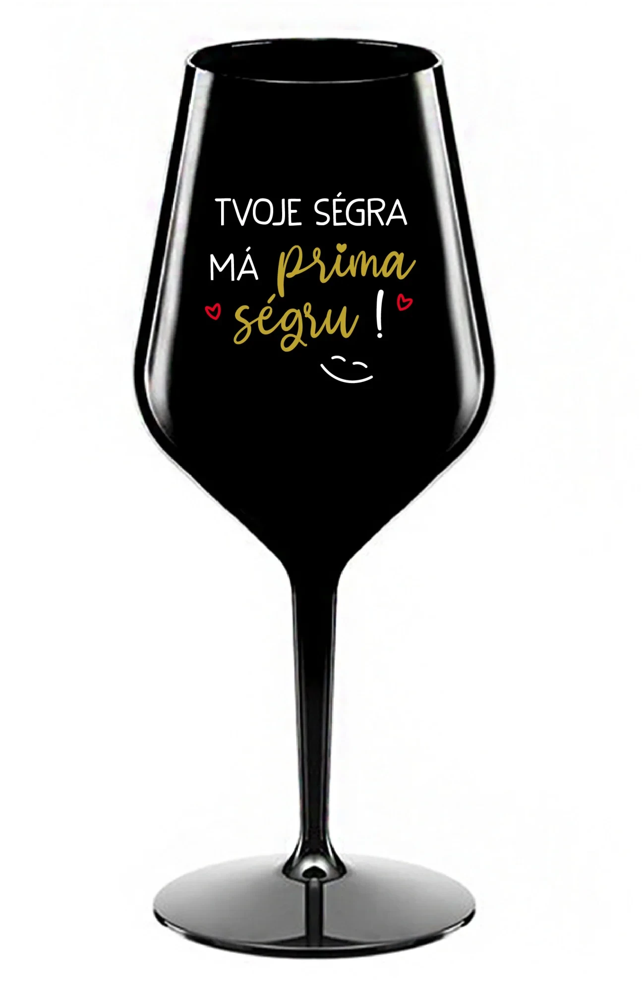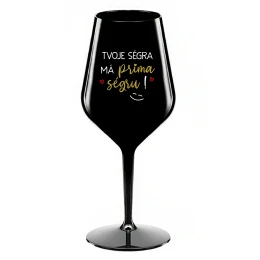 TVOJE SÉGRA MÁ PRIMA SÉGRU! - černá nerozbitná sklenice na víno 470 ml