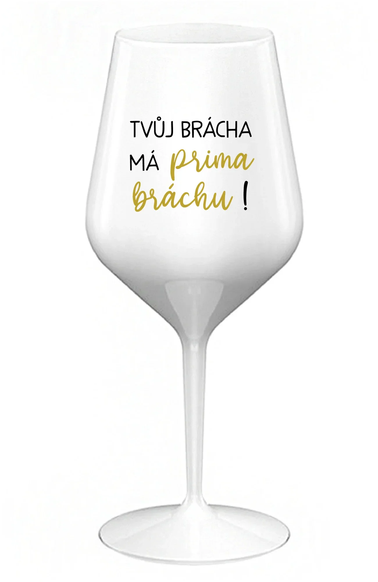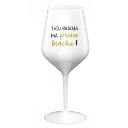 TVŮJ BRÁCHA MÁ PRIMA BRÁCHU! - bílá nerozbitná sklenice na víno 470 ml