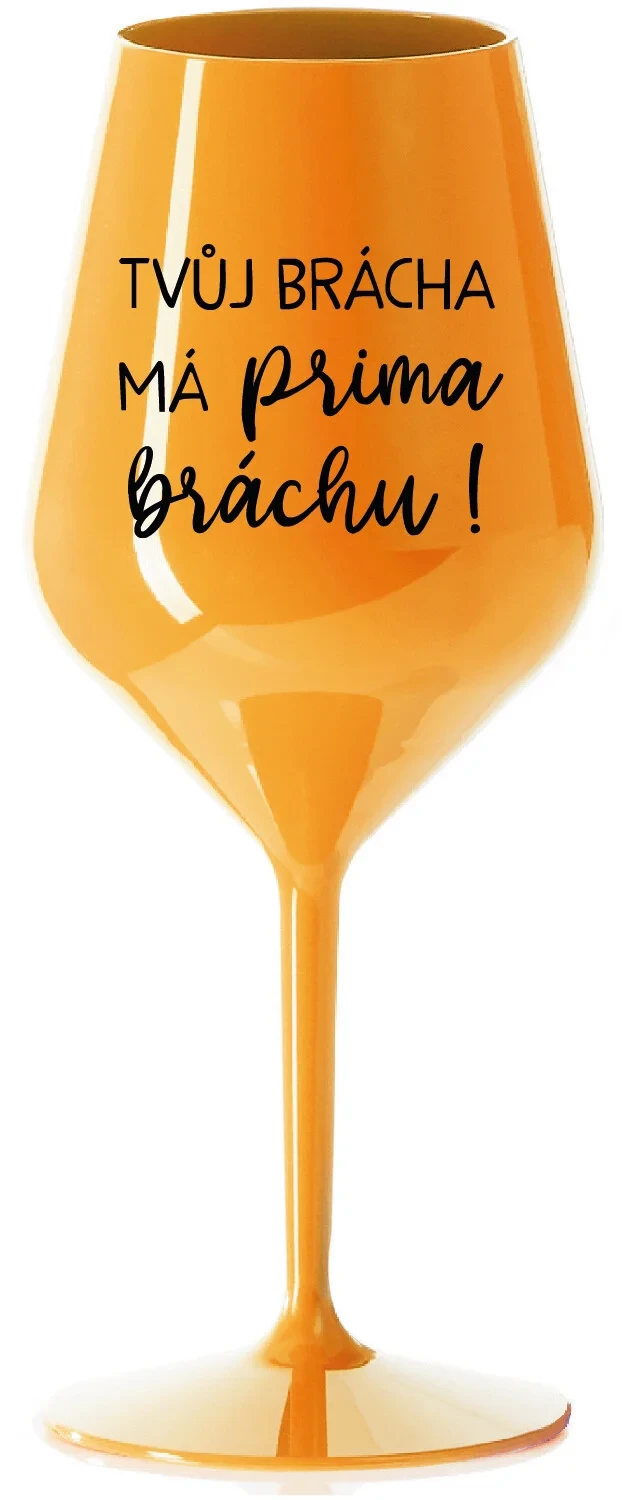 TVŮJ BRÁCHA MÁ PRIMA BRÁCHU! - oranžová nerozbitná sklenice na víno 470 ml