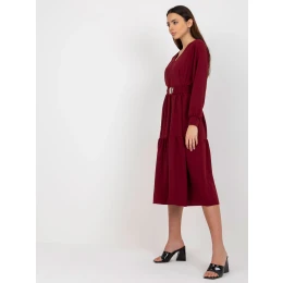 Bordové midi šaty s volánom a výstrihom do V OCH BELLA .