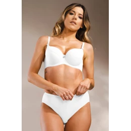 Biustonosz marki Unikat. Model Celina. Posiada druty, które podpierają piersi odpowiednio je kształtując. Fiszbiny pionowe osadzone na bokach. Produkt posiada regulowane ramiączka bez możliwości ich odpięcia. Haczyki do ramiączek metalowe. Biustonosz zapinany na haftki. Miejsce zapięcia: tył. Produkt został wykonany z 83% poliamid, 12% elastan, 5% bawełna. Produkt damski.