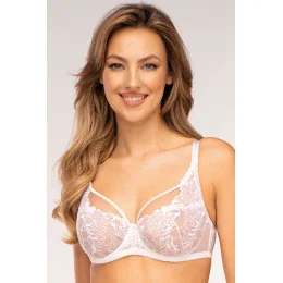 Podprsenka Unikat, model Gladys, má drôtiky, ktoré podporujú a tvarujú prsia, vertikálne kostice na bokoch, nastaviteľné ramienka bez možnosti odopnutia, kovové háčiky na ramienkach, zapínanie na háčiky a očká, zadná časť, vyrobená z 83% polyamidu, 12% elastanu, 5% bavlny, ženská farba.