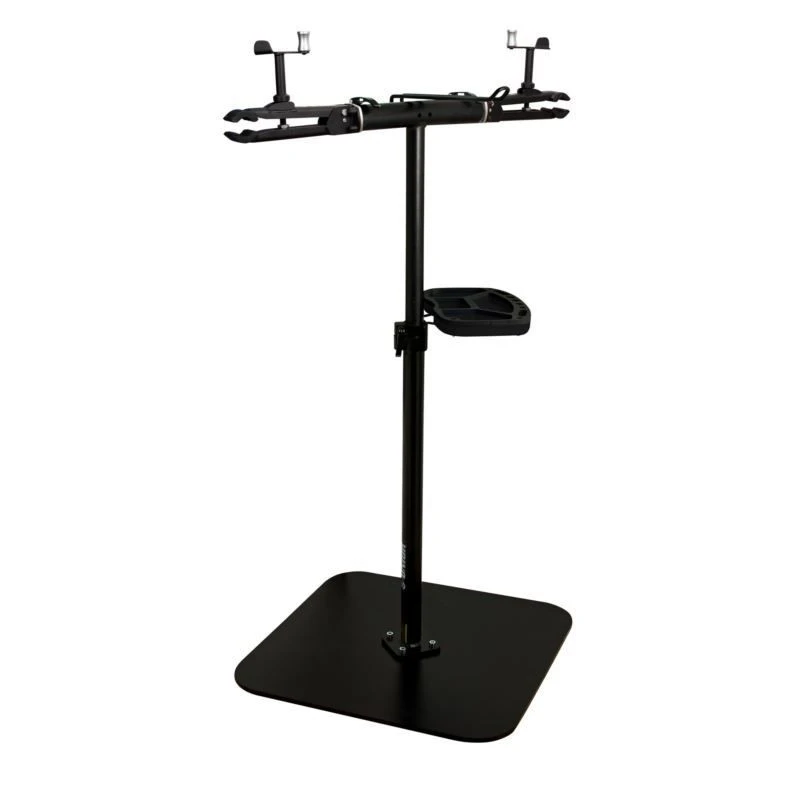 Stojak serwisowy do roweru z podstawą płytową i dwoma szczękami przeznaczony dla serwisów i bardziej wymagających użytkowników