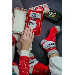 Tieto ponožky sú ideálnou voľbou na chladné dni - na nosenie doma, počas vianočného večera s rodinou, ale aj ako darčekový doplnok. Mäkká pletenina a príjemné chlpaté prvky zabezpečujú maximálne pohodlie a teplo. Je to malý detail, ktorý vám vyčarí úsmev na tvári a postará sa o pohodlie vašich nôh počas zimných dní.