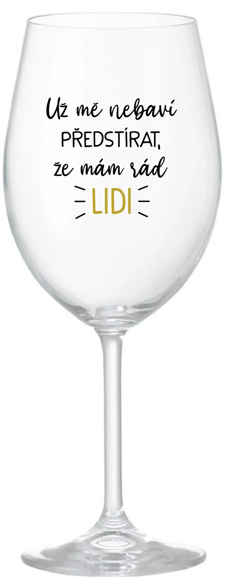 UŽ MĚ NEBAVÍ PŘEDSTÍRAT, ŽE MÁM RÁD LIDI - čirá sklenice na víno 350 ml