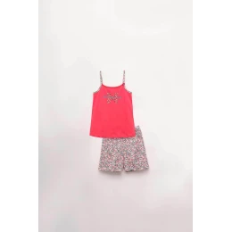 Dvojdielne detské pyžamo pre pohodlný spánok. Komplet pozostáva z jednofarebnej košieľky na ramienka s potlačou, ktorú dopňujú krátke kvetované šortky s pohodlnou gumou v páse. Pyžamo je vyrobené z vysoko kvalitnej, genetický nemodifikovanej gréckej bavlny, ktorá poskytuje vysoké pohodlie, príjemný pocit na dotyk, priedušnosť, pružnosť a odolnosť.