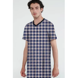 Vamp - Bavlnená kockovaná pánska nočná košeľa 20624 - Vamp