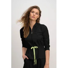 Pohodlná celozapínacia jednofarebná dámska mikina s kapucňou a farebnou šnúrkou v páse na stiahnutie, ktorá ideálne prilieha k telu a pri nosení sú zárukou skvelého pocitu a sebavedomia. Dámska mikina sú vyrobené z vysoko kvalitnej gréckej bavlny s prímesou Elastanu. Grécka bavlna je vysoko kvalitné, genetický nemodifikovaná, ktorá poskytuje vysoké pohodlie, príjemný pocit na dotyk, priedušnosť, pružnosť a odolnosť, zatiaľ čo Elastan dodáva odevu potrebnú pružnosť.