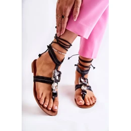 Dámské sandály v žabkovém designu jsou jako stvořené pro letní dny! Model je vyroben z eko kůže. Na středním pruhu jsou ozdobné krystaly. Tyto sandály mají plochý podpatek s protiskluzovou podrážkou. Vázání kolem lýtka znamená, že jej můžete správně přizpůsobit šířce nohy. Extrémně vzdušný model, který by neměl chybět ve vašem šatníku! Při výběru velikosti použijte tabulku velikostí.