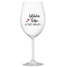 VĎAKA TEBE JE SVET KRAJŠÍ! - priehľadný pohár na víno 350 ml