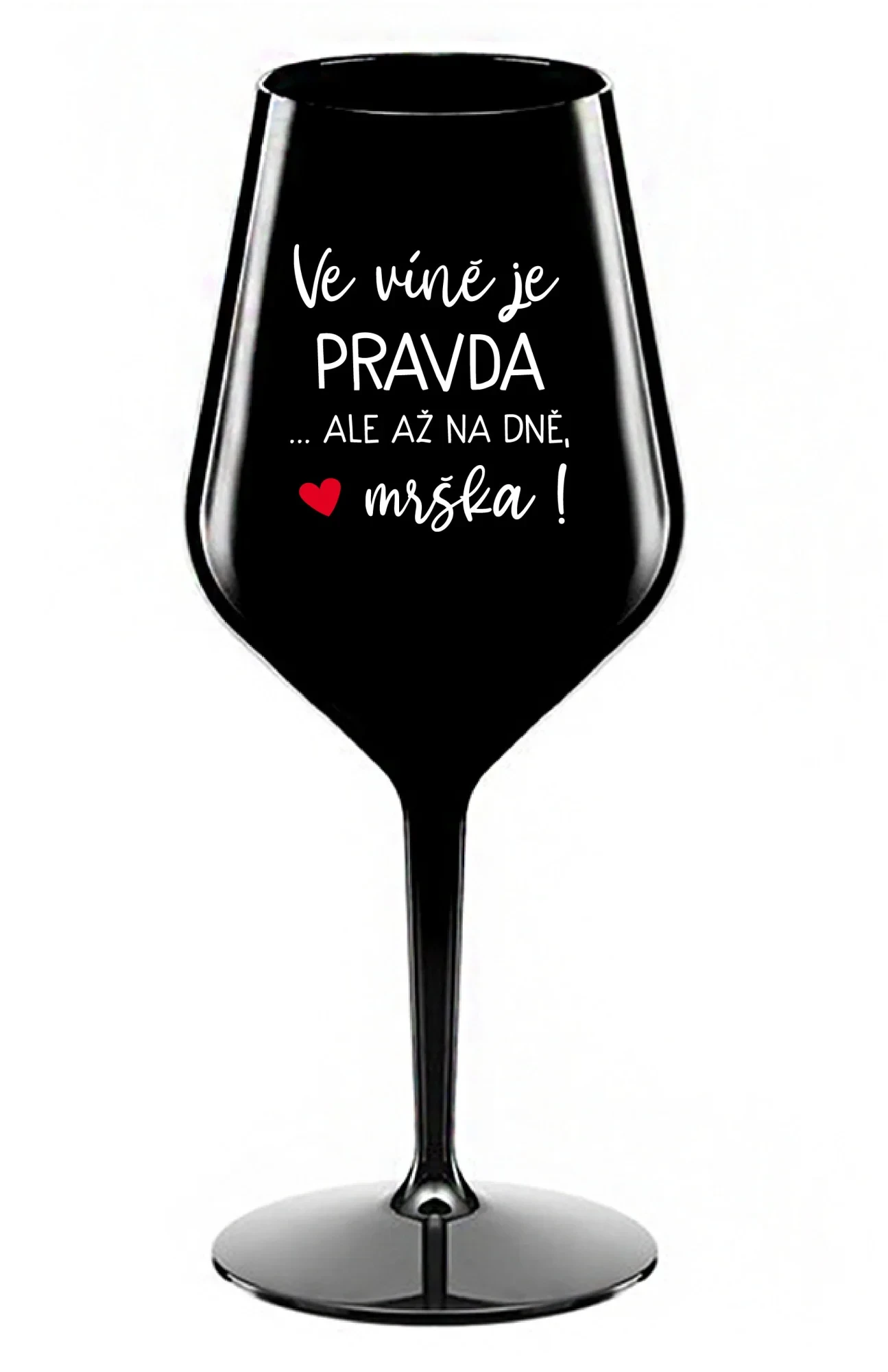 VE VÍNĚ JE PRAVDA...ALE AŽ NA DNĚ, MRŠKA! - černá nerozbitná sklenice na víno 470 ml