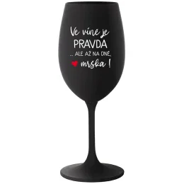 Vinná černá sklenice s originálním motivem VE VÍNĚ JE PRAVDA...ALE AŽ NA DNĚ, MRŠKA! je krásným a osobitým dárkem, které ale využijete i Vy sami třeba ve chvílích, kdy si budete chtít zpříjemnit náročný den. Tyto originální vinné sklenice jsou totiž nejen pro výjimečné události, ale i pro běžné večery, které si chcete zpříjemnit sklenkou dobrého vína. Jistě proto potěší každého milovníka vína, i toho, kdo si umí svůj život vychutnat plnými doušky.parametre