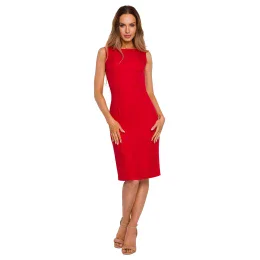 Tieto klasické ceruzkové šaty bez rukávov s nádychom sofistikovanosti odhaľujú ramená a zvýrazňujú krivky, s hlbokým výstrihom zdobeným retiazkou na chrbte. Šaty sa zapínajú na krytý zips.