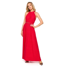 Jedny šaty a niekoľko možností stvárnenia. Rozšírený maxi strih s výstrihom bez ramienok je osvedčeným riešením pre dámy, ktoré si cenia voľnosť alebo chcú zakryť nedostatky svojej postavy. Šaty sú vyrobené z látky s brokátom, bez podšívky a s opaskom na zaväzovanie.