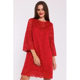 Jedinečné dvouvrstvé šaty s lichoběžníkovým střihem, které kombinují klasickou eleganci s romantickými detaily. Ve spodní části jsou vyrobeny z hladké látky, zatímco vnější vrstvu tvoří jemná krajka, která celému vzhledu dodává jemný a sofistikovaný nádech. Rukávy v délce k loktům jsou zakončeny půvabným volánkem, který vnáší do šatů lehkost a ženský nádech. Šaty v délce ke kolenům poskytují pohodlí a volnost pohybu. Nosí se přes hlavu a mají diskrétní zapínání na zádech pro snadné oblékání. Jsou navrženy a ušity v Polsku a zaujmou kvalitou zpracování a důrazem na detail. Ideální pro zvláštní příležitosti, kdy se chcete cítit stylově a elegantně. . Složení: Svršek: 90 % nylon, 10 % spandex . Spodní část: 95% polyester, 5% elastan.