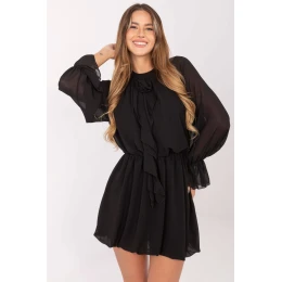 Tato rozklosovaná koktejlová šaty jsou nabídkou pro ženy, které rády vypadají elegantně a s noblesou. Vyrobené z vysoce kvalitní směsi polyesteru, viskózy a elastanu se krásně skládají na postavě, zajišťují pohodlí nošení. Guma v pasu zdůrazňuje pas a zaručuje ideální přizpůsobení. Model s mini délkou a dlouhými rukávy okouzlí jemnými detaily, volány na rukávech dodávají lehkost a kasa s ozdobnou růží vpředu přitahuje pozornost a zdůrazňuje výjimečný charakter šatů. Kulatý výstřih dodává celku eleganci a hladký vzor dělá kreaci vypadat elegantně a nadčasově. Šaty nemají zapínání, což je činí mimořádně pohodlnými při oblékání. Podšívka zajišťuje pohodlí a skvělé uložení materiálu. Je to ideální volba na večírek, oslavu nebo Silvestra, dodá Ti šarm a sebevědomí v každé situaci.