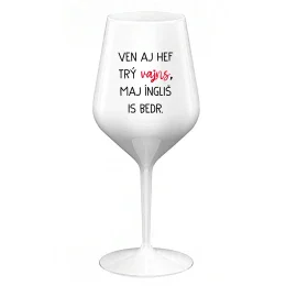 VEN AJ HEF TRÝ VAJNS, MAJ ÍNGLIŠ IS BEDR. - biely nerozbitný pohár na víno 470 ml