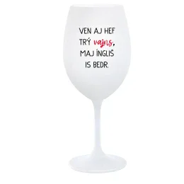 VEN AJ HEF TRÝ VAJNS, MAJ ÍNGLIŠ IS BEDR. - biely pohár na víno 350 ml