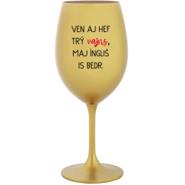 VEN AJ HEF TRÝ VAJNS, MAJ ÍNGLIŠ IS BEDR. - zlatá sklenice na víno 350 ml