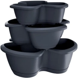 - Súprava pozostáva zo 4 častí: 3 kvetináče, 1 podstavec