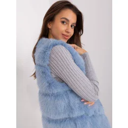 Modrá asymetrická kožušinová vesta .