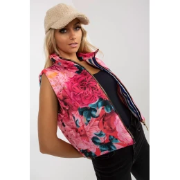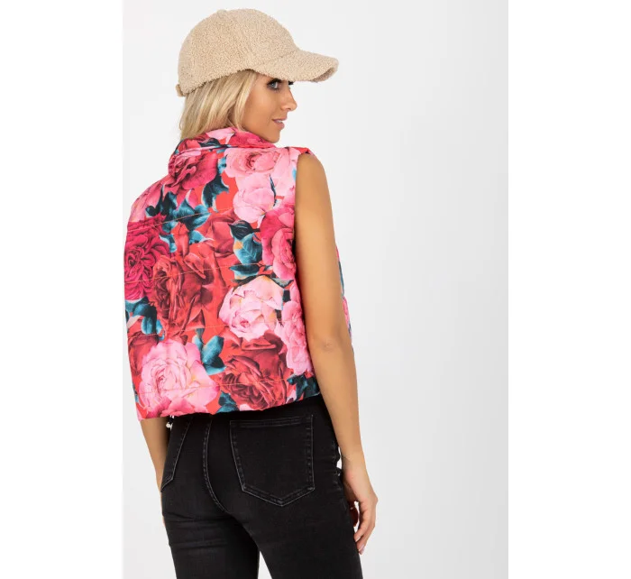 Krátka prešívaná vesta so zateplenou podšívkou. Vesta na zips s vreckami. Vesta z kvetovanej látky.