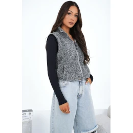 Elegantná dámska vesta s ležérnym charakterom, ideálna na každý deň. Je vyrobená z mäkkého polyesterového materiálu s prevahou kožušiny, ktorý zaručuje pohodlné nosenie a príjemné teplo počas chladnejších dní. Model sa zapína na praktický zips, má praktické vrecká a elegantný stojačik, ktorý chráni krk pred vetrom. Hladký vzor dodáva veste univerzálny vzhľad, vďaka čomu ju možno ľahko zladiť s mnohými stylingami. Štandardná dĺžka z nej robí skvelý kúsok na jeseň, zimu aj jar, a to tak k svetrom, ako aj k blúzkam alebo košeľiam. Model bez podšívky je ideálny na kombinácie vrstvenia.