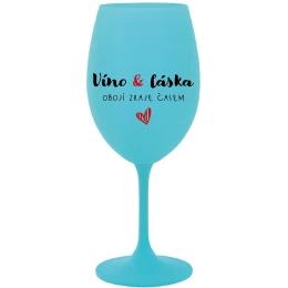 VÍNO A LÁSKA: OBOJÍ ZRAJE ČASEM - tyrkysová sklenice na víno 350 ml