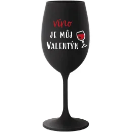 VÍNO JE MŮJ VALENTÝN - černá sklenice na víno 350 ml