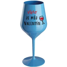 VÍNO JE MŮJ VALENTÝN - modrá nerozbitná sklenice na víno 470 ml