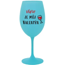 VÍNO JE MŮJ VALENTÝN - tyrkysová sklenice na víno 350 ml